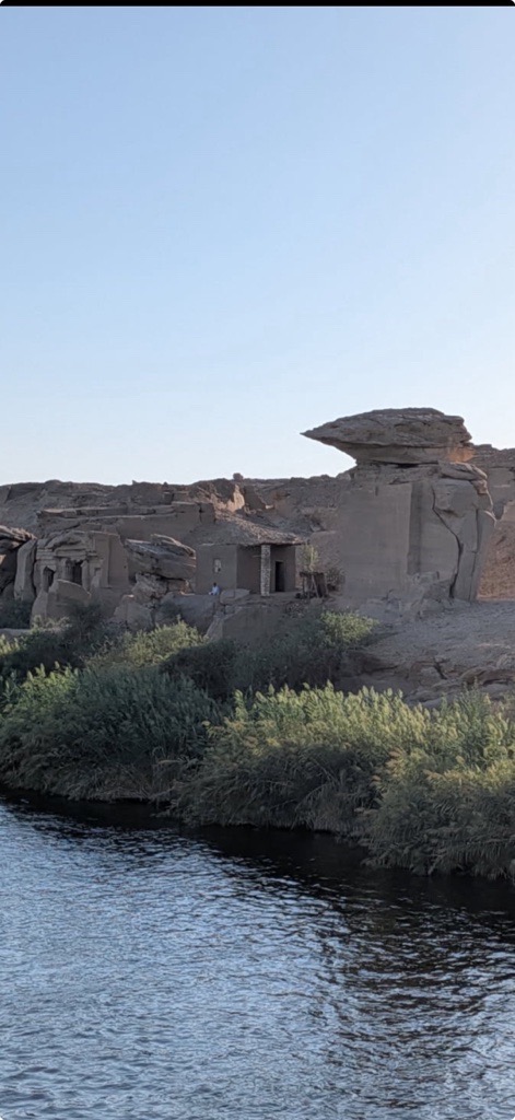 Cruising down the Nile. Lots of rocks and caves that people lived in.