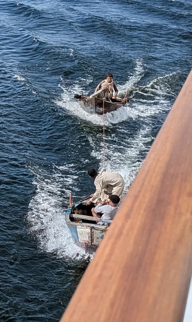 Somali pirates in training attacked our boat, but we were able to repel them with water hoses and machine guns. Just kidding. I think, like NYC âsubway surfersâ they just wanted to latch onto our boat for a faster ride đ
